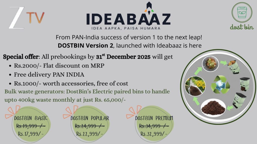 Supported by Karnataka Government | DPIIT Recognized | Seen in Ideabaaz, ZeeTV | Funded by IIT Madras | 15+ awards | Get Associated Click here to Pre Book now at Rs.2000/- only!! India's first patented automatic compost bin The most user friendly way to get Compost and liquid fertilizer from your kitchen and/or garden waste Explore Features Pre Book Now DOSTBIN Comparison & Overview Traditional Compost Bins v/s DOSTBIN 24 hrs composters v/s DOSTBIN Rapid composters v/s DOSTBIN DOSTBIN Variants - a comparison Composting guidelines by DOSTBIN Steps of DOSTBIN Premium How it Works The most user friendly way to get Compost and liquid fertilizer from your kitchen and/or garden waste 1 FeedAdd food scraps and handful of cocopeat, then press Feed to shred and drop 2DigestPress Digest to Aerate with Mixer Blade and Blower (Handles for Manual Variants) 3 HarvestUse Slider to transfer the compost to collection drawer for harvesting. Explore DOSTBin variants DOSTBin variants explanation in your own language as seen on ZeeTV IdeaBaaz ಕನ್ನಡ தமிழ் മലയാളം తెలుగు मराठी ਪੰਜਾਬੀ Testimonials DOSTBIN BASIC + AccessoriesRs.19,039/- (inclusive of GST) + free delivery PAN India Pre-Book DOSTBIN POPULAR + AccessoriesRs.23,519 /- (inclusive of GST) + free delivery PAN India Pre-Book DOSTBIN PREMIUM + AccessoriesRs.33,599 /- (inclusive of GST) + free delivery PAN India Pre-Book ACCESSORIES 4 x Cocopeat Brick + 2 Kg Remix Powder Buy Now DOSTBin Premium Demo VideoA motor-powered automatic machine with button controls and a mobile app for accessories and compost supply chain support. DOSTBin Popular Demo VideoTurn kitchen waste into compost and liquid fertiliser with DOSTBin Popular — a simple manual solution for a cleaner, greener environment. DOSTBin Community 💬