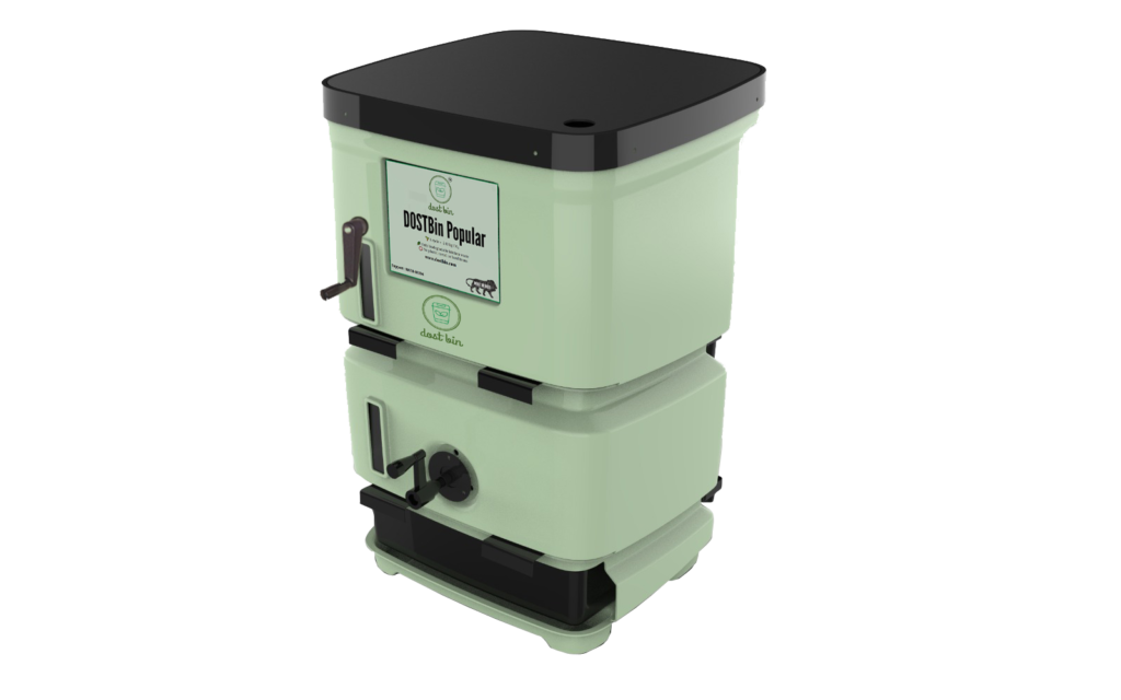 Turn kitchen waste into compost and liquid fertiliser with DOSTBin Popular — a simple manual solution for a cleaner, greener environment.